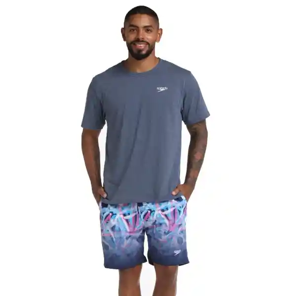 Conoce la Camiseta Manga Corta Paint Splash Para Hombre Esta Camiseta Gris Azulada de Silueta Clásica y Cuello Redondo en Rib es Ideal Para Usar en tu Día a Día Con Jeans Siempre Que Quieras Sentirte Cómodo y Fresco o Puedes Usarla Para ir a Tus Entrenamientos en la Piscina o el Gimnasio Acompañado de Prendas Deportivas. Esta Camiseta Manga Corta Gris Está Fabricada Con Los Más Altos Estándares de Calidad en Algodón 100% Para Brindar Comodidad y Frescura. Cuenta Con Estampado Moderno Playero Speedo Multicolor en la Parte Trasera y en el Frente Tiene Nuestro Icónico Logo Speedo Pequeño un Diseño Que Podrás Combinar Fácilmente Con Otras Prendas.