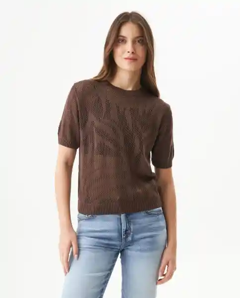 Tejida Para Mujer Manga Corta Con Diseño Animal Print Cuello Redondo Clásico. Elaborada en Tejido Desagujado Tipo Intarsia Que Aporta Textura y Estilo Con Acabado Liviano y Fresco. Mezcla de Fibras Con Modal Que Ofrece Sensación Suave al Tacto y Mayor Confort Térmico Ideal Para Climas Cálidos o Entretiempo. Galga Liviana. Placa Metálica de Chevignon en la Espalda. Ean- 799G008Caf161333 Plu- 1111133208405.