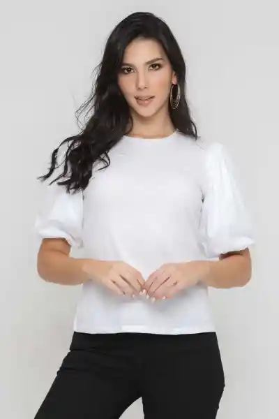 Tejido de Punto Cuello Redondo Manga Corta Globo Silueta Semi Ajustada.