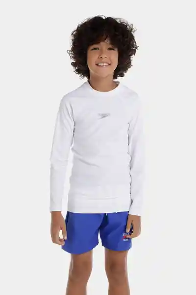 Manga Larga Hyden Junior Blanca Unisex Para Niños de 6 a 14 Años Está Diseñada Con Los Más Altos Estándares Calidad Para Brindar Comodidad y Protección en el Agua y Bajo el Sol a Los Más Pequeños ya Que Cuenta Con Factor de Protección Upf 50 Que Brinda Protección uv (De Los Rayos Uvb y Uva) Una Camiseta de Protección Solar Blanca Con Diseño Clásico y Logo Speedo en la Parte Frontal Que Protege a tu Pequeño Mientras se Divierte en el Agua Puede Usarse Acompañado de Cualquiera de Nuestras Pantalonetas de Baño o Vestidos de Baño Junior Para Brindarle Protección Extra de Los Rayos Del Sol Detalles: Camiseta Manga Larga de Protección Solar Para Niños de 6 a 14 Años Prenda Ligera y de Secado Rápido Protección Upf 50 de Los Rayos Uvb y Uva Cuello Redondo.