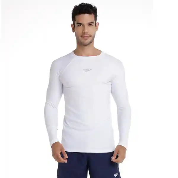 Descubre la Camiseta Manga Larga Hyden Unisex de Speedo Ideal Para Usar en la Piscina y Bajo el Sol Nuestra Camiseta Clásica Blanca Cuenta Con Factor de Protección Upf 50 Que Brinda Protección uv (De Los Rayos Uvb y Uva) Una Camiseta Manga Larga de Protección Solar Blanca Para Hombre y Mujer Con Diseño Clásico y Logo Speedo Pequeño en el Frente Que le Brindan un Diseño Clásico y Diferenciado a Tus Días en el Agua Cuenta Con Ojal de Cinta de Poliéster en la Parte Inferior Interna Que te Permite Ajustar tu Sunshine a Prendas Inferiores Evitando Que se Muevan o Deslicen Mientras Realizas tu Actividad Acuática Preferida Puedes Usarla Acompañada de tu Pantaloneta de Baño Speedo Para Que Tengas Protección Adicional Contra Los Rayos uv 50 Detalles: Camiseta Manga Larga de Protección Solar Blanca Ojal de Cinta de Poliéster Para Sujetar tu Sunshine a Prendas Inferiores Prenda Elástica y de Secado Rápido Protección Upf 50 de Los Rayos uv (Uva y Uvb) Cuello Redondo Silueta Slim Fit.