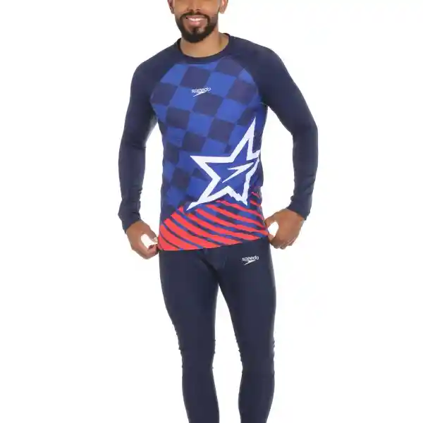 Es Speedo Trabajamos Cada Día Por Desarrollar Los Mejores Productos Para Que Disfrutes de la Piscina Con Comodidad Confianza y Estilo. Por Esto Dentro Nuestra Línea de Ropa Para Natación Diseñamos la Camiseta Manga Larga Sunshine Parisian Race Para Hombre Ideal Para Usar en la Piscina y Bajo el Sol. Esta Camiseta Azul Oscura de Protección Uv 50 Tiene un Estampado en Tonos Azules y Rojo Con Estrella Blanca y Logo de Speedo Blanco en la Parte Delantera. Puedes Usarla Acompañada de Nuestros Watershorts y Pantalonetas de Baño Como Protección Adicional Contra Los Rayos Uv 50.