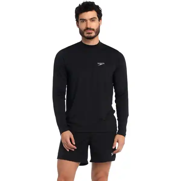 Descubre la Camiseta Manga Larga Sunshirt Negra Para Hombre de Nuestra Línea Ropa de Protección Solar. Ideal Para Usar en el Agua y Bajo el Sol. Una Camiseta Negra Que Cuenta Con Factor de Protección Upf 50 Brindando Protección Uv (De Los Rayos Uvb y Uva). Esta Camiseta Manga Larga de Protección Solar Negra Con Silueta Semiamplia y Diseño Clásico Con Logo Speedo Pequeño en el Frente Será tu Prenda Preferida Para Acompañarte en Tus Caminatas al Aire Libre o al Practicar Deportes Acuáticos Como Rafting Kayak Paddleboarding Kitesurf. Puedes Usarla Acompañada de tu Pantaloneta Speedo Preferida u Con Otras Prendas Inferiores Para Que Tengas Protección Contra Los Rayos uv 50. Detalles:- Camiseta Manga Larga de Protección Solar - Prenda Ligera y de Secado Rápido - Protección Upf 50 de Los Rayos Uvb y Uva - Cuello Redondo - Silueta Semiamplia.
