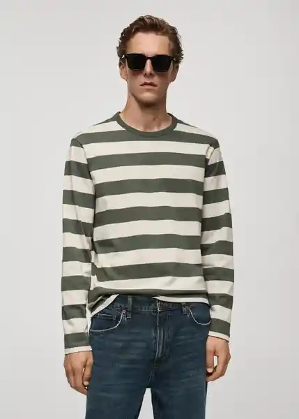 Bajo Recto, Cuello Redondo Acabado Rib, el Modelo Mide 190 cm y Lleva Una Talla M, Estampado de Rayas Horizontales, Manga Larga, Regular Fit, Tejido 100% Algodón - 77035975_48.