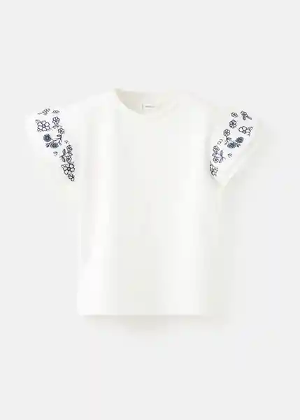 Cuello Redondo Detalles Florales Bordados Diseño Recto Manga Corta Con Volante Tejido 100% Algodón - 27016341_02.