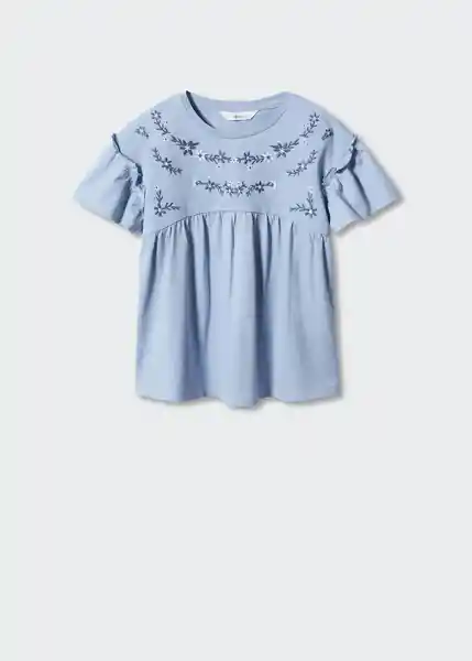 100% Algodón Bordado de Flores Cuello Redondo Detalle de Volante Manga Corta - 47014407_52.