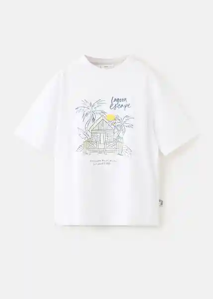 Cuello Redondo Dibujo Estampado en el Pecho Diseño Recto Manga Corta Tejido 100% Algodón - 27055963_01.