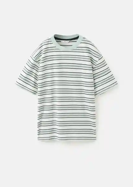 Cuello Redondo Diseño de Rayas Multicolor Diseño Recto Manga Corta Tejido 100% Algodón - 27045969_45.