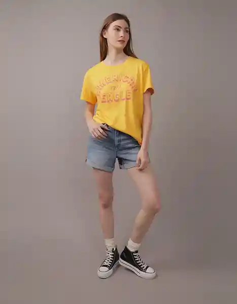 Algodón Suave Manga Corta Cuello Redondo Gráfico en el Frente