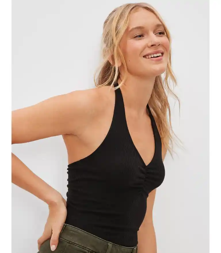 Camiseta Mujer Cuello Halter Color Negro Medium American Eagle