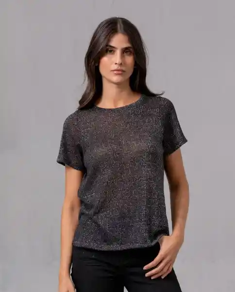 Referencia: 209F001 Manga Corta. Camiseta Con Detalles de Lurex Mujer Negro S.