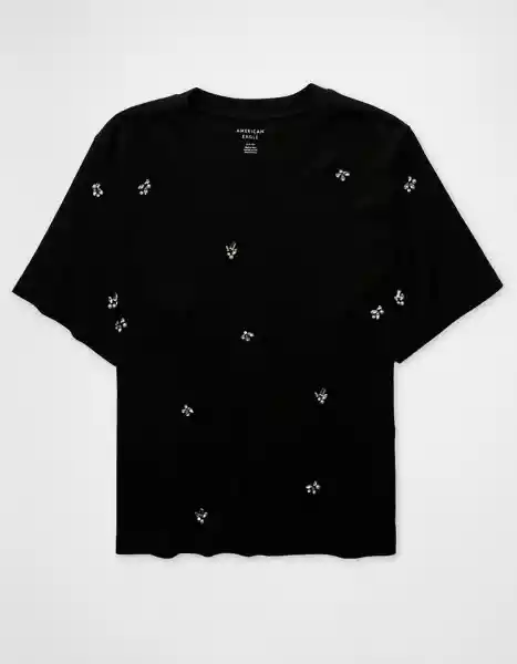 De Algodón Suave Cuello Redondo Adornado Con Racimos de Perlas y Piedras de Imitación. Mangas Cortas.