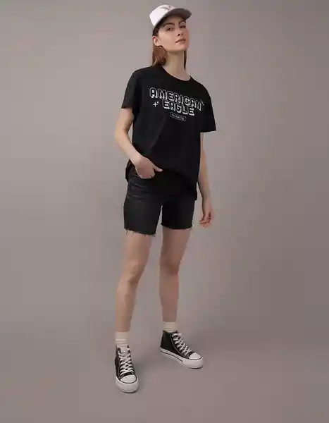 Algodón Suave Manga Corta Cuello Redondo Gráfico en el Frente