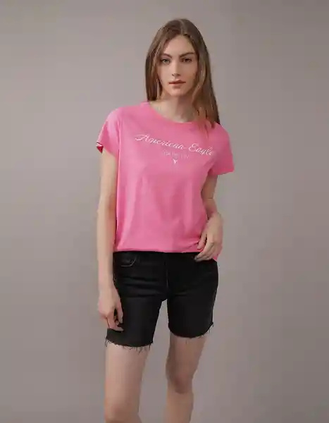 Algodón Suave Manga Corta Cuello Redondo Gráfico en el Frente