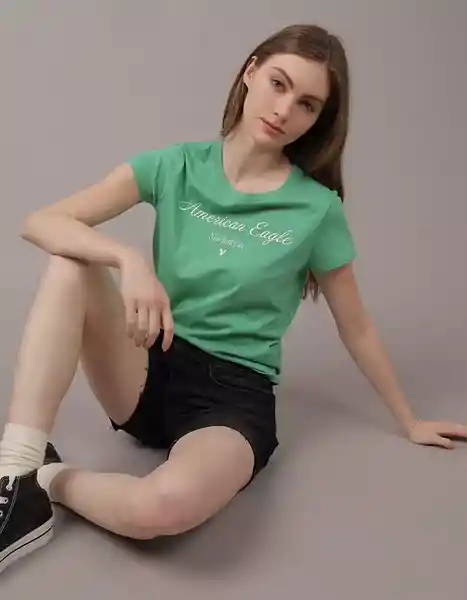 Algodón Suave Manga Corta Cuello Redondo Gráfico en el Frente