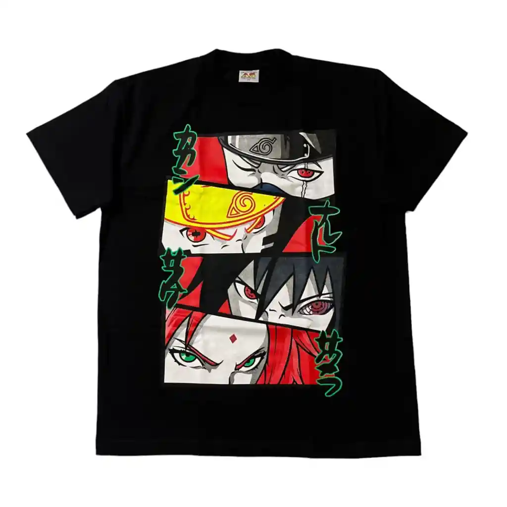 Camiseta negra con diseño de anime Naruto, Unisex. Diseño por delante y por detrás. Material algodón suave y transpirable. Talla M