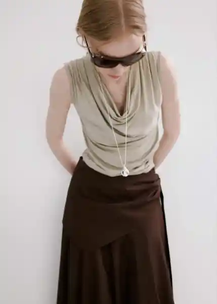 Cuello Pico Diseño Drapeado Diseño Recto Sin Cierre Sin Mangas Tirante Ancho - 27045843_06.