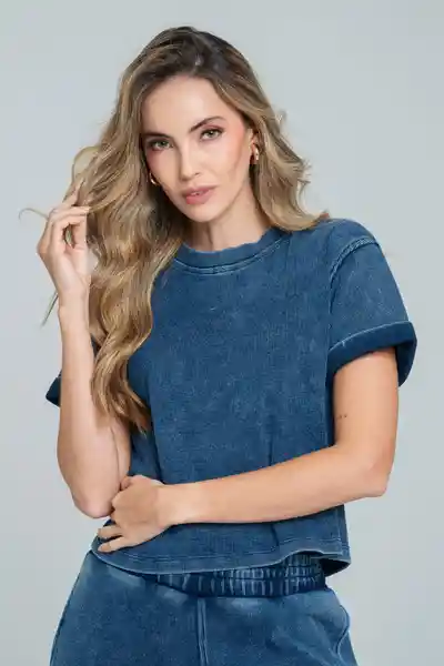 En Tejido de Punto Piqué Color Azul Índigo Tono Oscuro Con Manualidad Cuello Redondo Manga Corta Con Guardapolvo Largo Pretina.