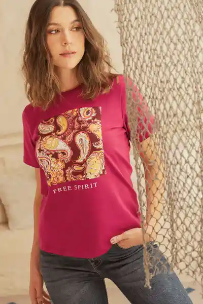 En Tejido de Punto Cuello Redondo Manga Corta Estampado Localizado.