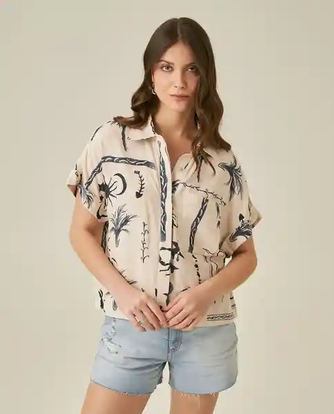 Resort Femenina Oversized Cuello Camisero Manga Corta Con Guardapolvo en Viscosa 89% y Lino 11%. Perilla Con Botones Ocultos. Bolsillo de Parche en Frente. Tela Estampada. Construcción Resort Oversized. Silueta Oversized Relajada. Ean- 711H013Cru131011 Plu- 1111133248128.