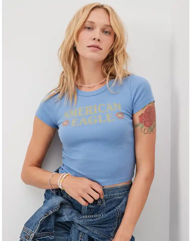 El Tejido Acanalado Añade Textura a tu Look Manga Corta Gráfico en el Frente Cuello Redondo Style: 1307-8646 60% Algodón 40% Poliéster.
