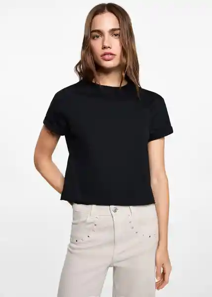 Cuello Solapa Redondo Estructura Plana Ligero Largo Crop Largo Manga Corta Silueta Relaxed - 87052538_99.