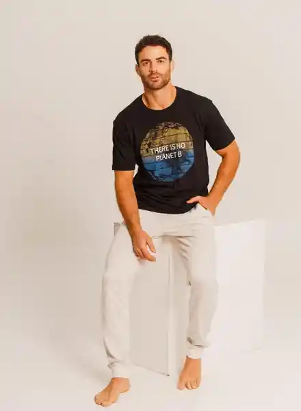Camiseta Pijama Corta Hombre Negro Talla M Bronzini
