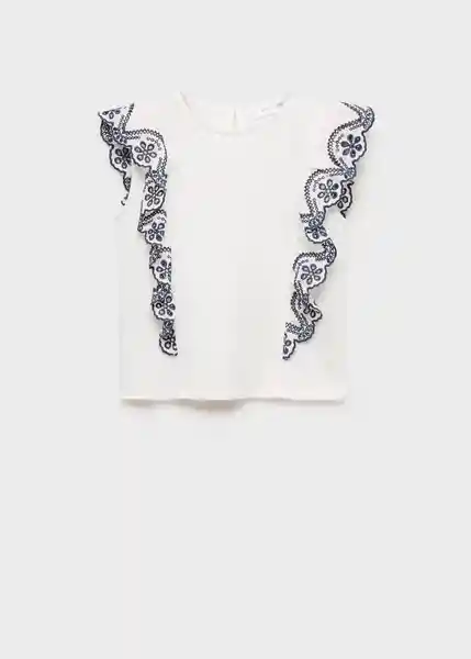 100% Algodón Cierre de Botones en la Parte Posterior Cintura Fruncida Cuello Redondo Diseño Recto Manga Corta Volante Panel en Contraste Fruncido - 87085957_02.