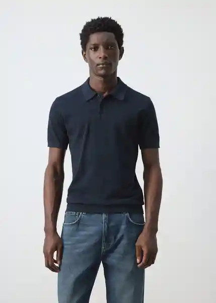 Bajo Recto Cuello Polo Con Cierre de Botones el Color Negro es Exclusivo Online Manga Corta Silueta Recta Tejido de Punto Fino Con Microestructura Tejido Mezcla de Algodón Terminaciones en Canalé en Cuello Manga y Bajo - 27045944_56.