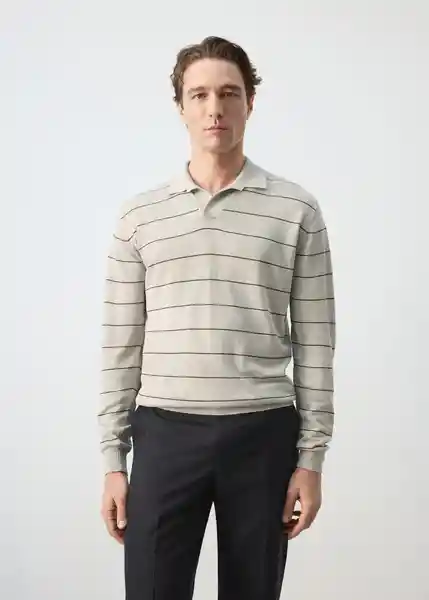 Cuello Polo Sin Botones Cuello Puños y Bajo Acabados en Canalé Diseño Rayas Horizontales Essentials: Made to Last Slim Fit Tejido de Punto Fino Mezcla de Lino - 27045943_08.