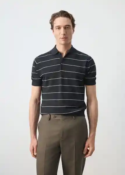 Cuello Polo Sin Botones Cuello Puños y Bajo Acabados en Canalé Diseño Rayas Horizontales Essentials: Made to Last Manga Corta Slim Fit Tejido de Punto Fino Mezcla de Lino - 27045942_56.