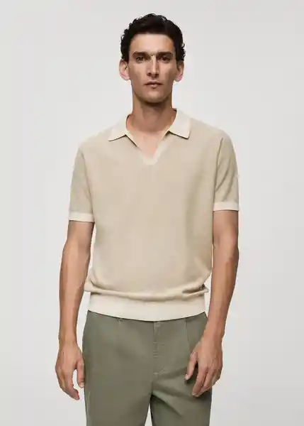 Bajo Recto, Cuello Polo de Canalé Acabado en Pico, el Modelo Mide 190 cm y Lleva Una Talla M, Manga Corta Con Canalé, Tejido de Algodón Con Estructura, Tejido de Punto Fino, Terminaciones a Contraste de Canalé en Cuello, Manga y Bajo 77024446_06.