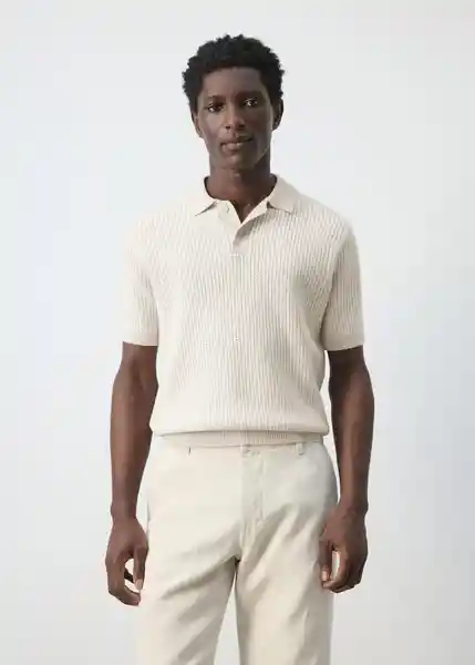 Bajo Recto Cuello Polo Con Cierre de Botones Cuello Mangas y Bajo Acabados en Canalé Estructura de Punto Grueso Con Relieve Exclusivo Online Regular Fit Tejido Mezcla de Algodón - 27035947_02.