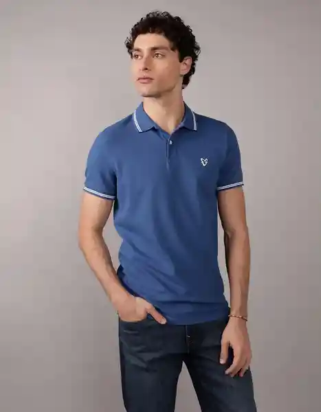 Tela de Piqué Elástico Plaqueta de Dos Botones Logo de Águila Bordado en el Pecho Detalles Inclinados.