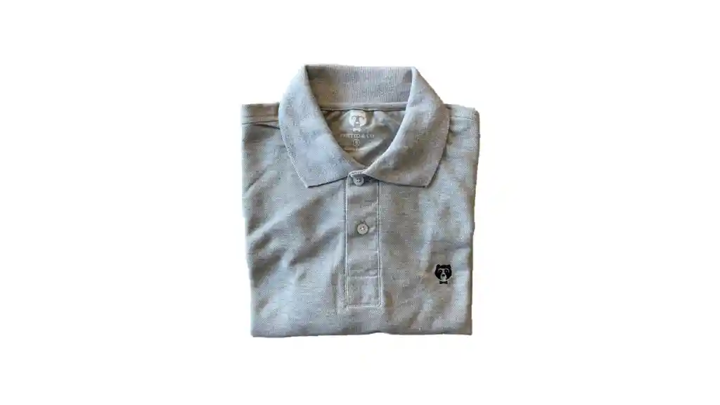Camiseta Polo manga corta para hombre en 100% algodon color gris con logo de Prietto bordado en color azul oscuro. Producto 100% colombiano.