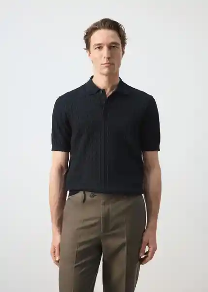 Bajo Recto Cuello Polo Con Cierre de Botones Cuello Mangas y Bajo Acabados en Canalé Diseño Trenzado Essential...Ver más