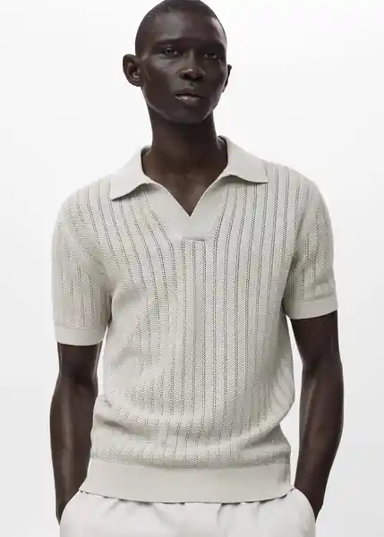 Bajo Recto Cuello Polo Sin Botones Cuello Mangas y Bajo Acabados en Canalé Diseño de Punto en Espiga Con Calados el Modelo Mide 190 cm y Lleva Una Talla M Manga Corta Silueta Recta Tejido 100% Algodón - 17031243_03.