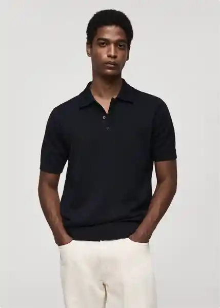 Bajo Recto, Cuello Polo Con Cierre de Botones, Diseño Recto, el Color Blanco es Exclusivo Online, el Modelo Mide 190 cm y Lleva Una Talla M, Manga Corta, Tejido de Punto Fino, Terminaciones de Canalé en Cuello, Manga y Bajo 77084443_56.