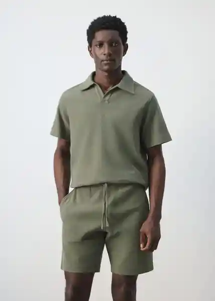 Bajo Recto Cuello Polo Sin Botones Manga Corta Regular Fit Tejido en Mezcla de Algodón Con Microestructura - 27097895_48.