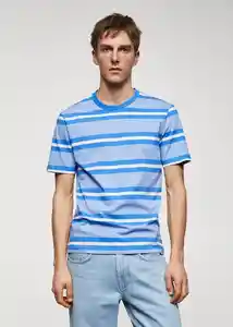 Bajo Recto Cuello Redondo en Contraste el Modelo Mide 190 cm y Lleva Una Talla M Estampado de Rayas Horizontales Exclusivo Online Manga Corta Slim Fit Tejido 100% Algodón - 67000483_52.