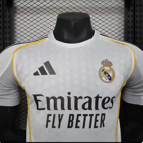 Tallaje slim fit (ajustada) logos termosellados / incluye cajita ideal para dar como regalo ⚽ Camiseta Real Madrid 2025/2026 – Blanca ¡Vive la nueva era del Real Madrid con la camiseta blanca 2025/2026! Diseñada para los verdaderos madridistas, esta prenda combina elegancia, pasión y rendimiento en cada detalle. El clásico color blanco resalta con finos toques dorados que simbolizan la grandeza del club más ganador del mundo. Confeccionada con tecnología AEROREADY, absorbe el sudor y mantiene tu cuerpo seco y cómodo, ya sea en la cancha, en el gimnasio o mientras apoyas al equipo desde las gradas. 👕 Características destacadas: Diseño oficial del Real Madrid temporada 2025/2026 Escudo termo sellado y de alta calidad Tejido ligero y transpirable (100% poliéster reciclado) Corte cómodo y moderno