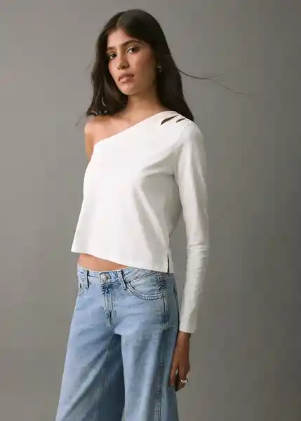 Detalle Fruncido en el Hombro Diseño Asimétrico Diseño Recto Manga Larga Sin Una Manga Tejido 100% Algodón - 17048270_02.