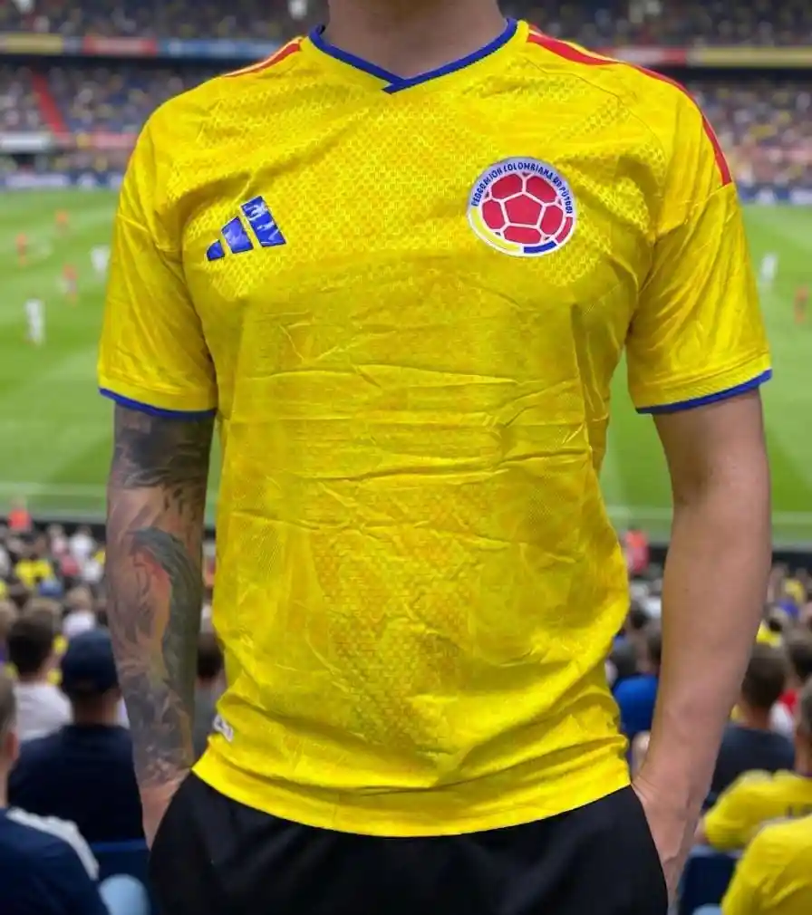 Luce los colores de la selección con esta espectacular camiseta de la Selección Colombia, diseñada para quienes viven la pasión del fútbol y quieren vestir como los verdaderos fanáticos. Esta camiseta versión 1.1 tipo original ofrece una excelente calidad en materiales y acabados, muy similar a la utilizada por los jugadores, con un diseño moderno y detalles que resaltan los colores tradicionales de Colombia. ✨ Características principales: 🇨🇴 Escudo encauchetado de la Federación Colombiana de Fútbol, con acabado en relieve de alta calidad. 🟡 Color amarillo vibrante con detalles en azul y rojo que representan la bandera nacional. 🧵 Tela ligera, transpirable y cómoda, ideal para uso deportivo o casual. 👕 Versión 1.1 tipo original, con acabados premium y excelente ajuste. 💨 Material de secado rápido que ayuda a mantener frescura durante el uso. 🔥 Diseño moderno con textura en la tela que le da un toque más elegante y deportivo. ⚽ Perfecta para: Ver los partidos de la Selección Colombia Entrenar o jugar fútbol Uso casual para los verdaderos hinchas. 💛 Una camiseta hecha para sentir la pasión del fútbol colombiano en cada momento. 🔥🇨🇴