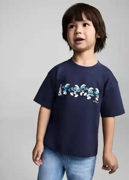Cuello Redondo Dibujo Pitufos Diseño Recto Manga Corta Tejido 100% Algodón - 87055733_56.