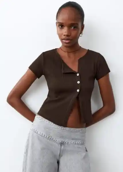 Cierre de Botones Laterales Cuello Redondo Diseño Recto Manga Corta Tejido de Algodón Tejido de Punto Canalé - 27094444_30.