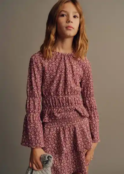 Cierre de Botón Cuello Redondo Detalles Fruncidos Diseño Estampado Manga Larga Acampanada Total Look - 87040646_76.