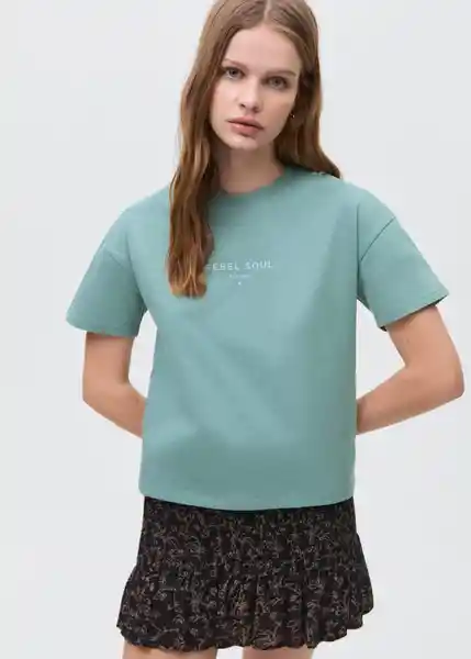 100% Algodón Cuello Redondo Manga Corta Mensaje Estampado en la Parte Delantera - 87054784_40.