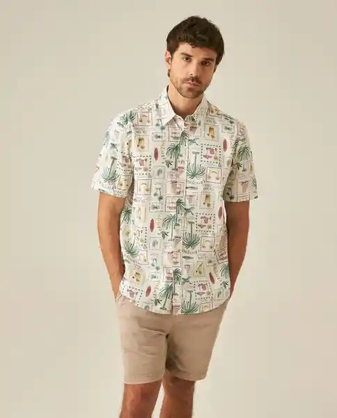 Masculina Manga Corta Classic Fit Resort en 100% Algodón. Estampado Continuo Playa Con Gráficos de Palmeras de Distintos Tamaños. Sin Bolsillo. Marquilla Bandera en Costado. Botones Con Acabado y Marcados. Construcción Tipo Resort en Estampación Continua. Silueta Classic Fit Relajada. Ean- 611H029Cru110606 Plu- 1111133247879.