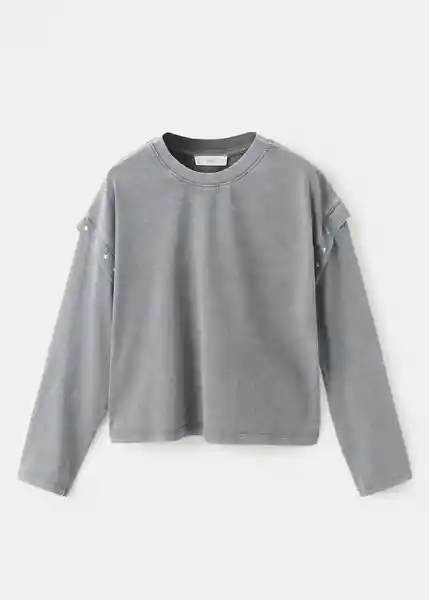 100% Algodón Abalorios Metálicos Cuello Redondo Detalle de Doble Manga Detalle de Estrellas Manga Larga - 17006355_95.