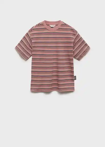 100% Algodón Cuello Redondo en Contraste Diseño de Rayas Diseño Recto Manga Corta Silueta Oversize - 87076345_75.